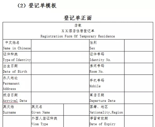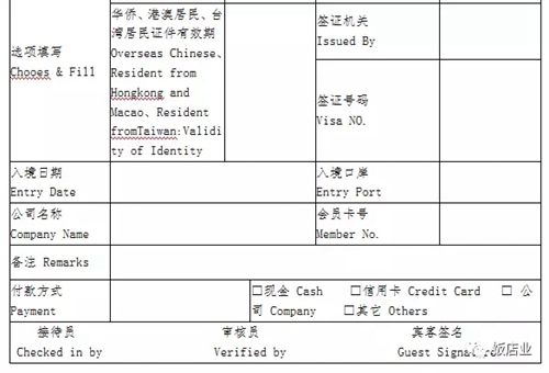 住宿登記單的有些項目涉及個人隱私,且與酒店日常經營無關,建議酒店刪去。比如職業、停留事由、住宿原因、同住人關系、從何處來、何處去等。