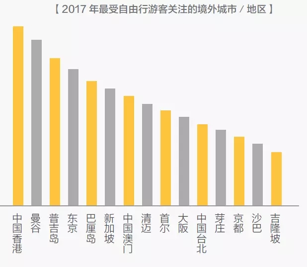 2017年最受歡迎的15 個(gè)境外城市全部地處亞洲,其中,日本京都、馬來西亞沙巴和吉隆坡首次上榜。