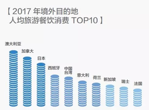 境外旅游餐飲人均消費(fèi)最高的目的地是澳大利亞、加拿大和日本,澳洲牛排、日本壽司等美食的價(jià)格均相對較高。