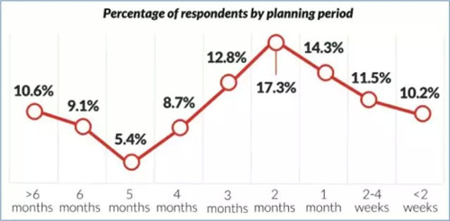 從過去連續三年的調查報告中可以看出,提前2個月預訂的人數占比最高,而幾乎三分之二的消費者會提前至多三個月來預訂住宿。然而,還有超過四分之一的受訪者表示他們會提前至少5個月來完成住宿預訂。