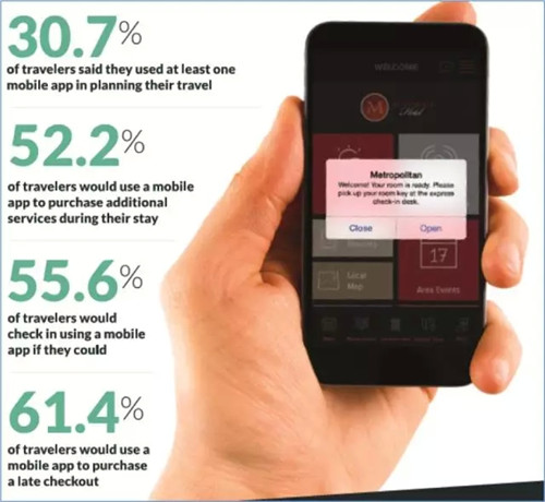 移動應用為酒店提供了增加收益的巨大機會。在此之前,酒店從未有過與客人關于住宿地如此有效的溝通機會和能力。旅客渴望更多的便利性,比如利用移動程序來辦理入住手續。另外,對于酒店來說一個更大的機會就是許多消費者愿意花更多的錢來獲得一些附加值,比如客房升級和延遲退房等等。所以,酒店現在是時候投資于移動應用,并制定相配套的營銷策略,提高客戶滿意度,從而最終實現收入的增加。