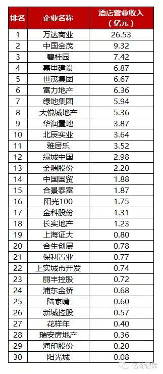 2016年上半年中國上市房企酒店營業收入Top30
