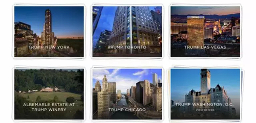 特朗普一共擁有15家已開業(yè)的酒店,分別位于紐約蘇荷區(qū)、佛羅里達多拉、巴拿馬、芝加哥、加拿大多倫多、拉斯維加斯、華盛頓、邁阿密、夏威夷、蘇格蘭、愛爾蘭、夏威夷檀香山、溫哥華和里約熱內(nèi)盧,這些酒店以浮夸的建筑外表和優(yōu)越的地理環(huán)境位置著稱。