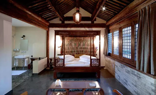另外四間呈祥、牡丹、露華、清雅客房則由清代僧寮改建而成,更具傳統中式風格。室內的中式元素也把握得恰到好處,來自于日本設計的掛鉤產品、長有翅膀的閱讀燈、Diptyque的香熏等擺設的選擇上也顯示了主人的獨特品位。