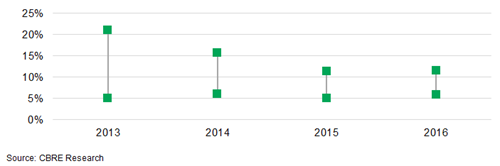 Bunz先生表示,高水平的買家活動導致區域酒店的收益差異變化明顯。“業主希望從這些進入市場的潛在買家那里獲得溢價。”他補充到,高昂的建設成本意味著購買是進入區域位置最經濟可行的選擇。