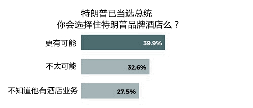 以上調(diào)查數(shù)據(jù)和此前獲得的數(shù)據(jù)十分相近,區(qū)別是相比以前有更多的人愿意住特朗普品牌酒店,但他們不知道候選人真的擁有酒店。