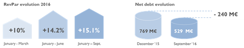 2、第三季度的強(qiáng)勁勢頭、十月業(yè)務(wù)的出色表現(xiàn)以及第四季度的預(yù)訂讓集團(tuán)維持了2016年每間客房可用收益預(yù)計(jì)增長在中上程度的范圍內(nèi)(80%歸功于價(jià)格的調(diào)節(jié)改善)