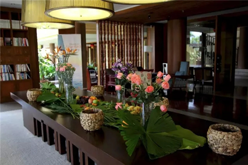 “對于一個向往寧靜的人來說,再也找不到一處比圖書館更舒心合意的天地,慵懶舒適的午后,屋內燈光柔和,音樂輕柔,書卷在手時,已忘此身何處?若是覺得乏了,品一份精致的下午茶,齒頰留香之間,倍感美食之妙。或是同我們的本地花藝師一起,精心修剪一些雨林中的花葉條枝或瓜果蔬菜,完成一份自然之美的作品。”西雙版納安納塔拉度假酒店公關主任楊潔瓊說道。