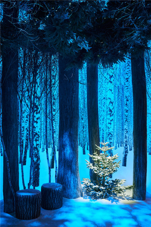 設計師還特意為這個“森林”開了幾個口,用燈光模擬從樹隙間灑落的自然光,顯得十分浪漫。
