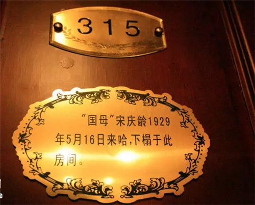 1929年,為完成孫中山先生的遺愿訪問蘇聯回國的宋慶齡女士便下榻于馬迭爾賓館三樓137號(現315房間)休息。