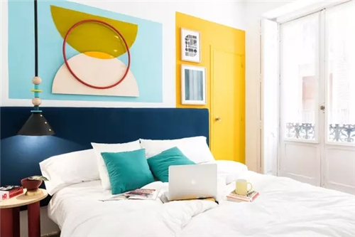 每個房間,都有獨特的一套配色,墻上的色卡還會貼心地告訴你具體是什么樣的色號,這是酒店一個別致的“體驗項目”。現在,你可以按照色卡預定房間了!