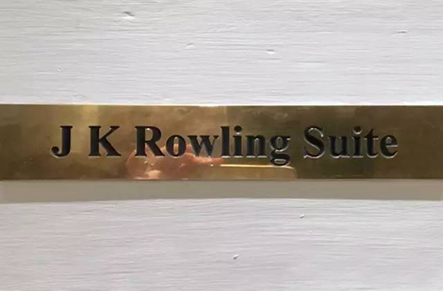 而她之前住的552房間,現在已改名為“J.K.羅琳套間”,門上更是有一個可愛的貓頭鷹小標志。房間內的家具也一直沒有換,這也就意味著,J.K.羅琳寫作時所用的桌子和椅子,還在房間內擺放著。