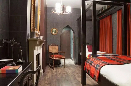 雖然這間酒店與羅琳的創作沒有關系,但其房間的靈感來源于《哈利·波特》小說的內容,仿制“霍格沃茨魔法學校的臥室”推出了霍格華茲主題套房。