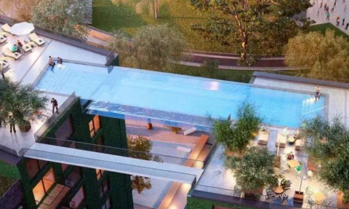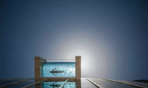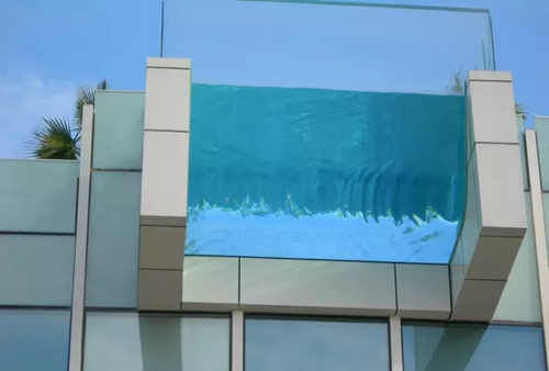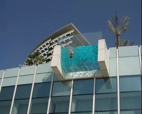 游泳池向屋頂邊緣外突出3米,小編弱弱地問一句,你敢游嗎?