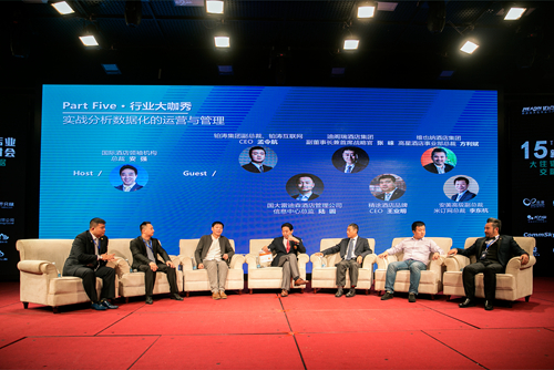 迪閣瑞酒店集團副董事長兼首席戰略官張崍,維也納酒店集團高星酒店事業部總裁方利斌,精途酒店品牌CEO王業明,鉑濤集團副總裁、鉑濤互聯網CEO孟令航,國大雷迪森酒店管理公司信息中心總監陸圓以及安美高級副總裁、米訂網總裁李東杭,就“實戰分析數據化的運營與管理”這一主題展開討論,國際酒店領袖機構總裁安強擔任主持人。