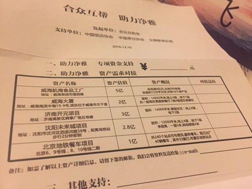 “幫扶計(jì)劃”共列出凈雅5項(xiàng)資產(chǎn),其中威海大廈(建于2009年)、濟(jì)南開(kāi)元項(xiàng)目(建于2010年)和沈陽(yáng)未來(lái)城項(xiàng)目(建于2012年),屬于凈雅自有物業(yè),以前用于經(jīng)營(yíng)門(mén)店,均位于當(dāng)?shù)攸S金地段,占地面積1萬(wàn)平米以上,共估值7.8億元。威海航海食品工廠建于2010年,占地500畝,曾用于凈雅海參和魚(yú)蝦等海鮮產(chǎn)品的儲(chǔ)藏和初加工,估值5億元。北京地鐵餐車項(xiàng)目是2013年8月凈雅為謀求轉(zhuǎn)型,通過(guò)收購(gòu)“天天見(jiàn)面”推出的大眾餐飲項(xiàng)目,可在北京240個(gè)地鐵站點(diǎn)提供餐車服務(wù)。