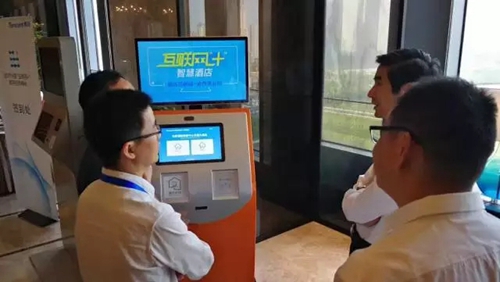 今年6月初,“互聯網+智慧酒店”自助服務機亮相在杭州北辰國際酒店的大堂,這臺機器讓客人在半分鐘內就可以完成入住手續。通過它,客人可以自主在設備上完成身份登記、核實、訂單處理、付款以及獲得房卡等流程,并可以完成自助退房,然后獲得電子發票等手續。