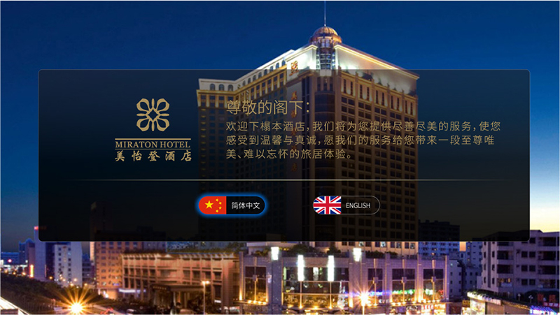 新聞來源:宏輝智通 發布日期:2015-11-29 瀏覽次數:11789深圳宏輝智通科技有限公司在2014年8月成功為美怡登酒店實施酒店IPTV方案,我們將繼續秉承客戶第一的理念為酒店打造一個穩定和具有時代象征的酒店IPTV系統,我們擁有多年的實施方案的經驗,并擁有強大的技術后盾和UI設計團隊。讓每一個成為我們實施的合作伙伴都感受到專業和精致!